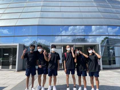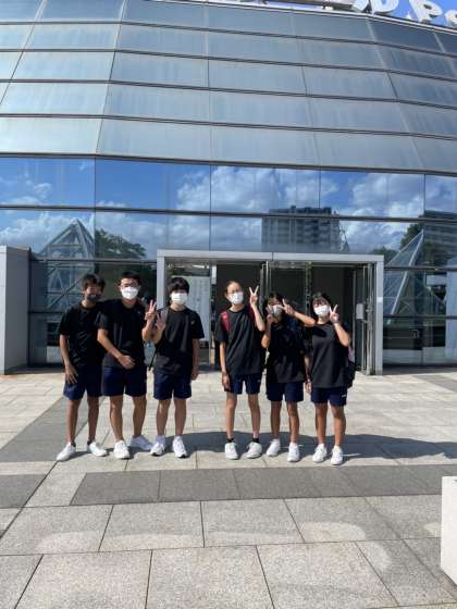 本日の大会の会場である大阪プールの前で出場した選手たちの集合写真を撮影しました。