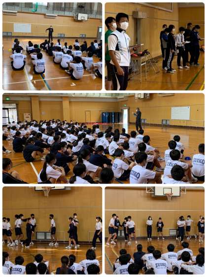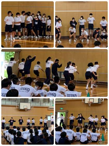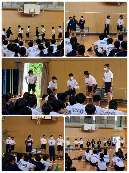 本日9月22日(木)は、4・5・6限目に各授業ごとでの、1・2年合同体育授業ダンス発表会を体育館にて開催しました。