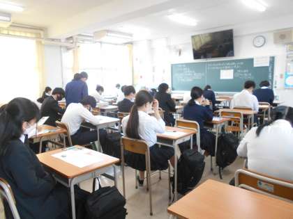 今日は、3年生は土曜授業で英検の受験にチャレンジしています。
