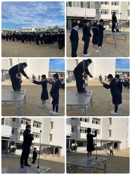 『期末テストまで2週間となり、今後もチャレンジテストや実力テストが控えているので日々の授業を大切にしてしっかり勉強しましょう。また、先日の【クリーンずいこう】では以前より多くの人に参加してもらい、そのおかげで少しずつゴミが減っています。毎日綺麗な環境で過ごせるように一人ひとりが心がけましょう!』