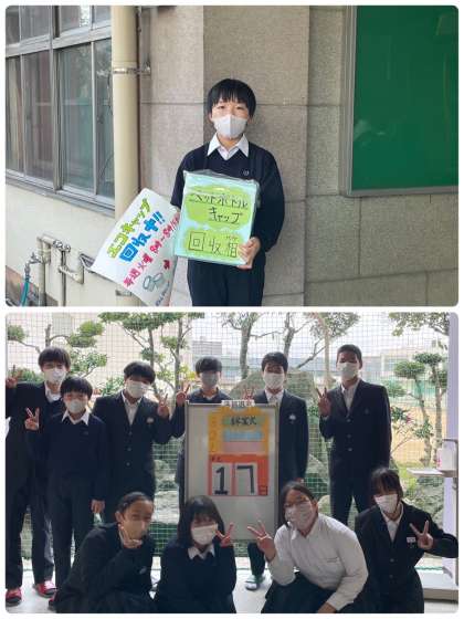 昨日の赤い羽根共同募金・エコキャップ回収の様子に続いて、本日は、「あと17日」の集合写真を撮影しました。