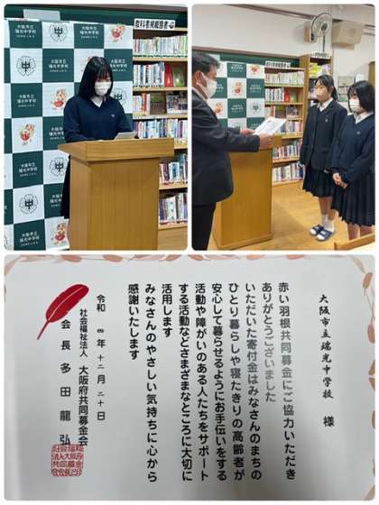 『赤い羽根共同募金』活動への協力に対して、社会福祉法人 大阪府共同募金会より感謝状が贈呈されました。