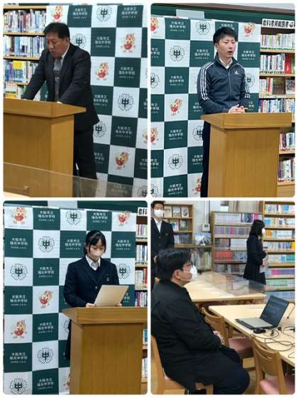 おはようございます。まずは、新年明けましておめでとうございます。今日は新年が良いスタートをきれるような言葉を調べてきました。『これからがこれまでを決める』という言葉は聞いたことがありますか?これは、あるお坊さんの言葉です。今までにたくさんの失敗をしていても、それを生かすも殺すもこれから次第ということです。このようなポジティブな気持ちで今年もまた頑張っていきましょう!また、昨年行った赤い羽根募金では『1,091円』集まりました。ご協力ありがとうございました。次はユニセフ募金と行う予定です。また全校集会で告知しますので、ご協力をお願いします。
