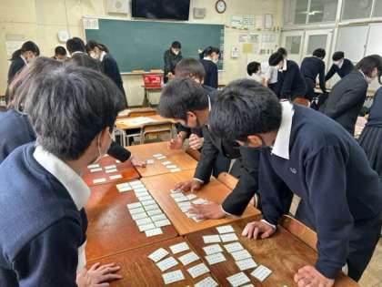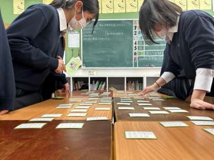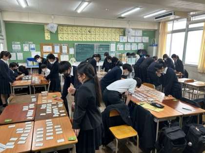 2年生は、今度百人一首大会に向けて練習に取り組みました。