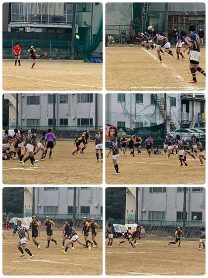 トライを先制しましたが、取り返され、互角で白熱した攻防の試合となりました。前半は、5−7での折り返しとなりました。