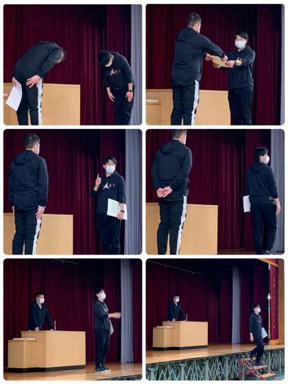 本日3月13日(月)1限目は、最後の卒業式練習を行いました。答辞である、「卒業生の喜びのことば」の全員の前での動きの確認、卒業証書授与の動きの見本付きでの確認を行いました。