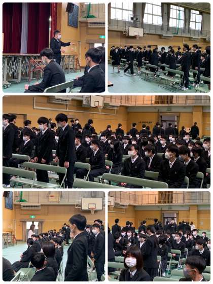 続いて、卒業生退場の動きの確認を行い、2・3限目に行う卒業式予行のための準備は完了しました。