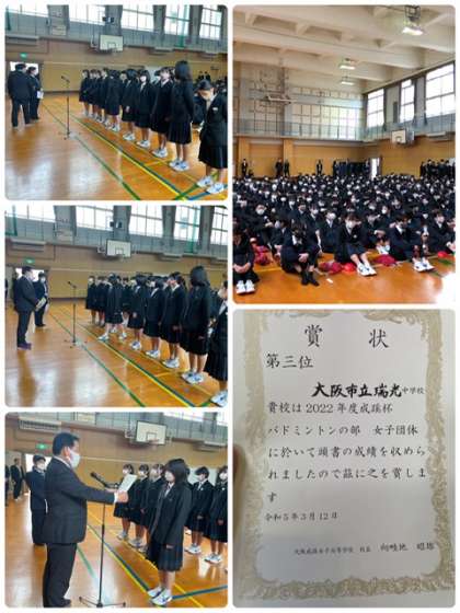 4月からは、次の新たな歴史のスタートにふさわしく、誰もが「私は、瑞光中学校の生徒です。」と誇れるような、文武両道「瑞光中学校生としてのプライド」を持って、新年度を迎える準備をしてください。