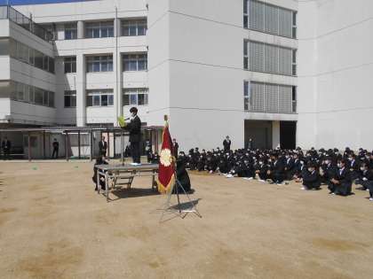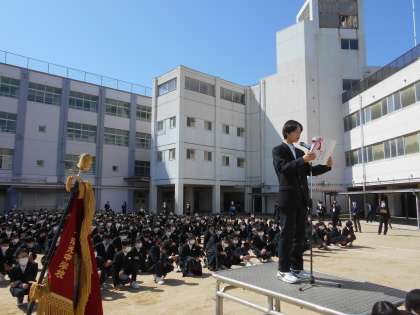 1年生の代表生徒のあいさつと在校生代表の生徒会の生徒があいさつしました。