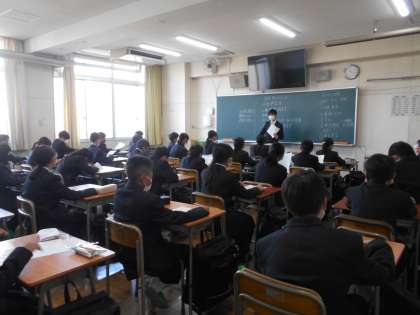 1年生は教室で担任の先生から、教科書・副読本やお知らせの文書の配付されています。