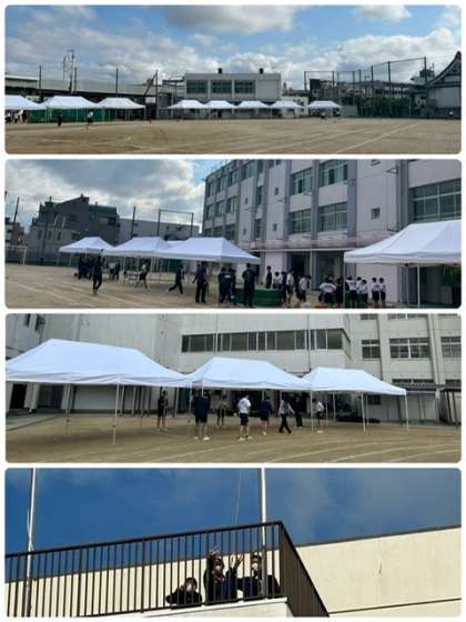 今日は体育大会の予行練習を行います。早朝から準備しています。