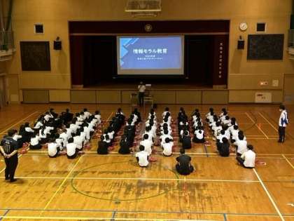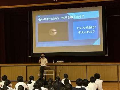 今日は、2年生対象の情報モラル教育を行いました。東淀川区役所のゲストティーチャー事業として講師の先生にお越しいただき、SNSやネットによる犯罪被害について詳しくお話していただきました。ご家庭でも生徒の皆さんとぜひ話し合ってみてください。