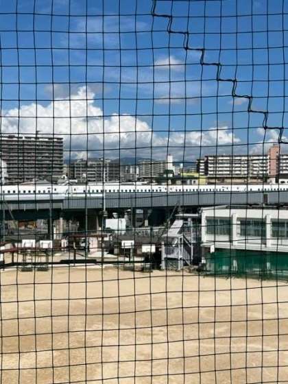 新幹線からも瑞光中学校の緑の看板が見えます。