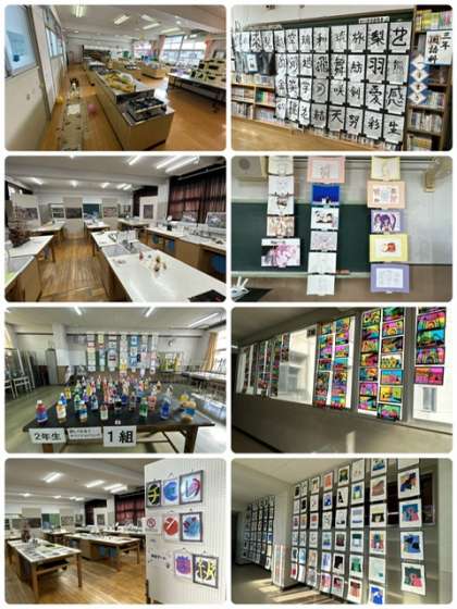 教科や部活動、学年で取り組んだ作品をたくさん展示しています。力を合わせて頑張ってくれました。