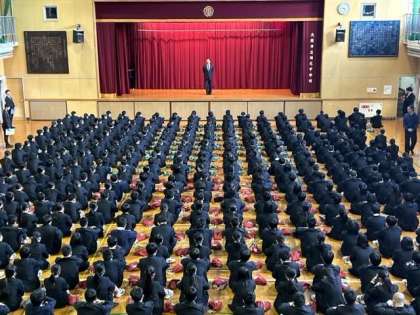 12月22日(金)に2学期の終業式が行われました。校長先生から2学期を振り返って、生徒の皆さんが頑張ったことや行事をとおして成長できたことなどいいお話しがたくさんありました。吉川先生からは冬休み中の過ごし方や事故やトラブルにあわないように、体調に気をつけて3学期に元気に登校してきてくれるようにとお話しがありました。