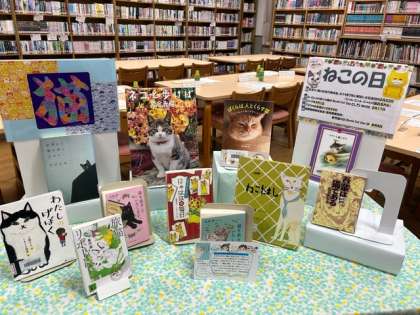 今日は、ねこの日です。図書室ではたくさんの本の貸し出しをしています。生徒のみなさんもお昼休みや放課後の開館を利用して本を読んでください。