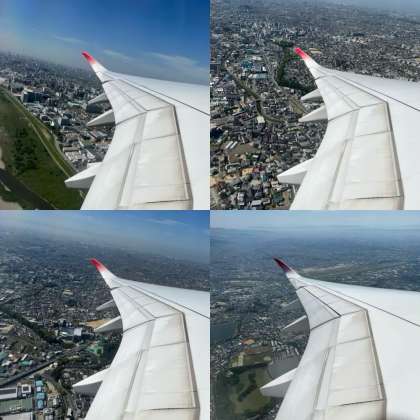 あっという間に大阪の街並みが小さくなり、すぐに四国高知の海岸線を見えてきます。