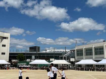 瑞光中学校は、全国で唯一?体育大会の保護者観覧スペースから、子どもたちが新幹線より速く走っている動画が取れるかもしれない学校です。金曜日の平日開催ではありますが、ぜひ、お子様が頑張っている姿を応援にお越しください。