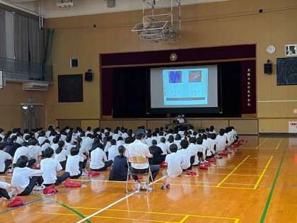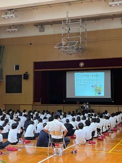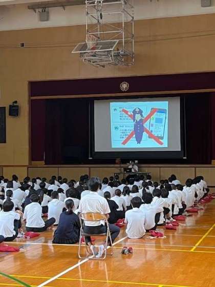 警察の少年サポートセンターより来ていただき、SNSでのトラブルやネットで起こる危険な事象についてなど、夏休み中の生活でも注意しないといけない内容についてお話いただきました。
