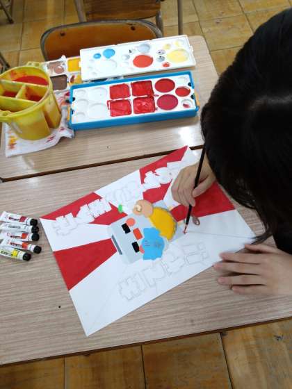 夏休み開始時より『大阪市明るくきれいな選挙推進ポスターコンクール』に出品する作品を制作しています。