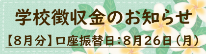学校徴収金 8月振替のお知らせ