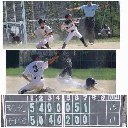 瑞光中学校は、なにわ公園球場で田辺中学校と対戦しました。