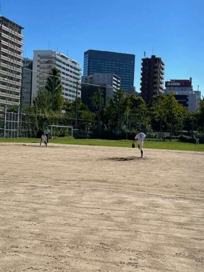 野球部が浪速公園で茨田中学校とベスト8をかけた試合を行っています。