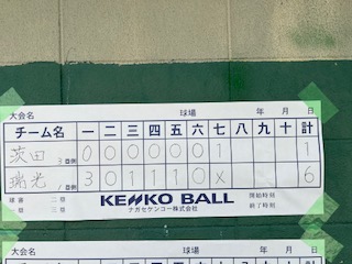 瑞中野球部が茨田中学校に6-1で勝利し、大阪市秋季総体のベスト8に進出しました。