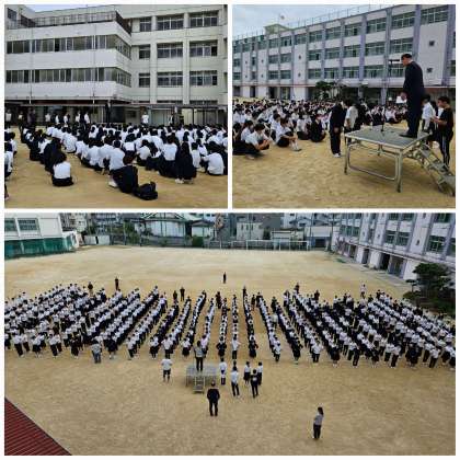 涼しくなってきましたので、久しぶりにグランドでの全校集会です。