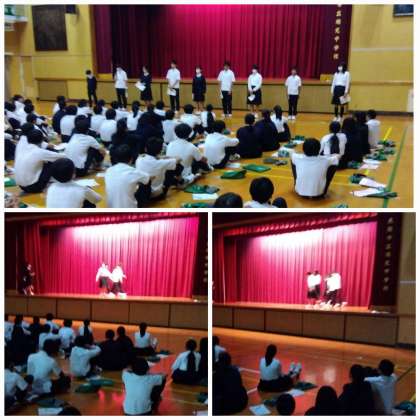 行動したらよいかを、各クラス代表生徒による寸劇で、わかりやすく
