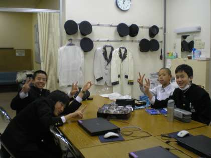 東淀川区役所では、生徒たちが玄関で生活習慣のチェックの