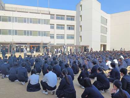 昨年まで、校長先生の集会でのお話をホームページにあげるなかで一つの共通点を見つけました。それは、すてきな姿を見せてくれた生徒のみなさんへの「感謝」の思いです。生徒の皆さんだけではなく、先生方、保護者、地域の方々などへの感謝の思いを校長先生が語ることも、とても多かったです。「感謝」の思いは、自分がしんどいことやつらいことを乗り越える力になります。この1年も変わらず、すてきな姿を見せてほしいと思います。