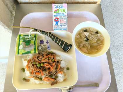 大阪市の給食では、こどもの日の行事献立に「ちまき」がつきます。ちまきは、もち米やうるち米、米粉などで作ったもちをささの葉で包み、蒸して作ります。中国から伝来したもので、「茅(ちがや)」の葉で包んでいたことから「茅巻き」と呼ばれていました。「こどもが元気に育ちますように」という願いが込められています。