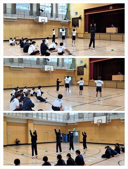 2年生は、ラジオ体操のテストを行っています。見学の生徒も、採点作業をしています。