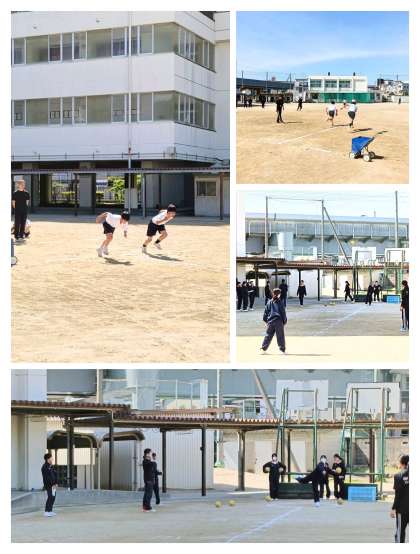 6時間目、2年生男女体育の様子です。男子は50m走、女子はハンドボール投げの体力テストを行っています。今朝は肌寒さを感じましたが、日中は日差しが強く暑いくらいです。