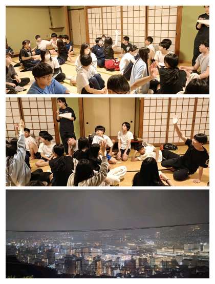 クラスレクの写真です。1日目が終わりました。明日に備えて、ゆっくり体を休めましょう。長崎夜景、少し雲がかかっています。