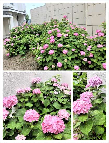 今日は、一日雨の予報です。校内や学校周辺の紫陽花も雨の中、見ごろを迎えています。