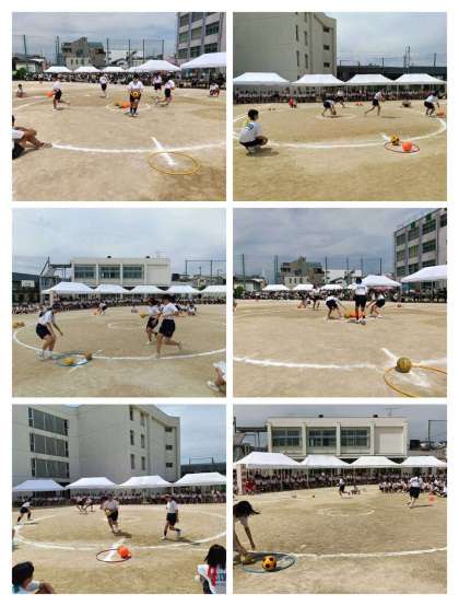 クラス対抗で、時間内にボールを奪い合います。