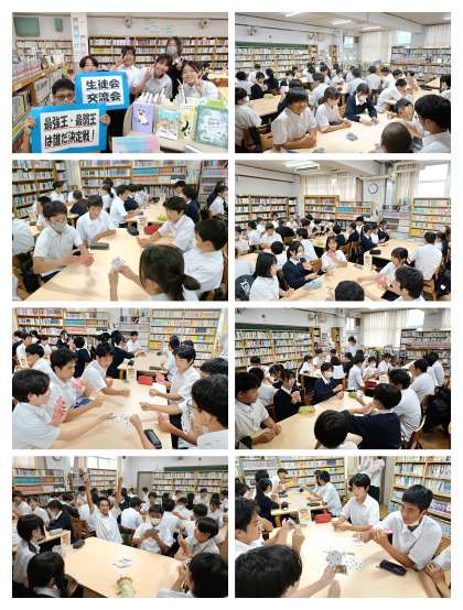 放課後図書室で、生徒会交流会『最強王・最弱王は誰だ決定戦!』(ババ抜き)が行われました。今回の企画は、前回の生徒議会でとった「こんなことしたい!こんな取り組みをしたい!瑞中をより良くするには?」のアンケートで多かった「全学年での交流会がしたい」を受けて行われた企画です。