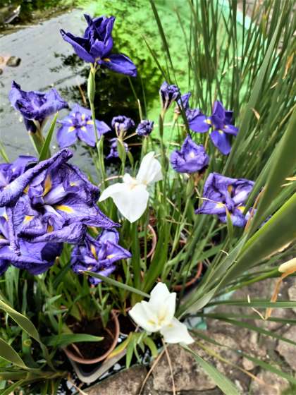 紫の花菖蒲に続いて、白の花菖蒲が咲いています。