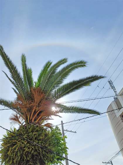 空を見上げると太陽の光を浴びて虹がかかっていました。