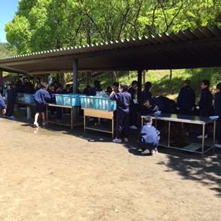 この後9時から野外炊飯で各班に分かれてカレーライス