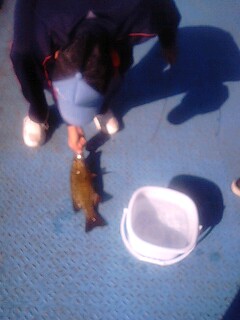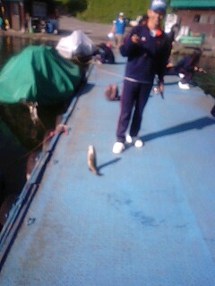 やっと釣れました。ミミズ効果です。周りの人もミミズに対する抵抗感が薄れていきます。