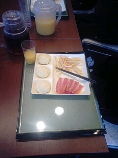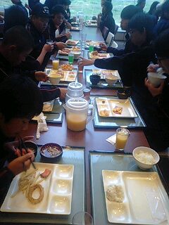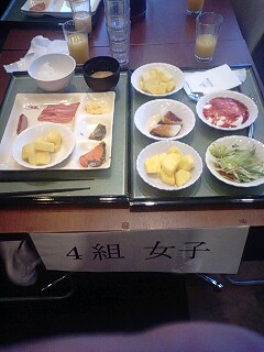 おいしそう。朝食です。今日の活動は6組がジップライン、4組と5組がバス釣り、1組と2組と3組がホテル周辺の散策です。