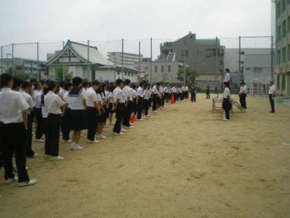 5名の教育実習生が今日で最後になりますので、集会であいさつ