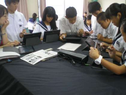 今日は、2年生の音楽の授業でタブレットを使って授業を