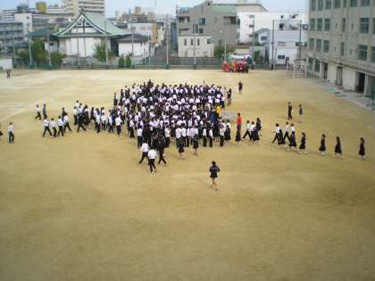 地震が発生しました。本校にも揺れが到達し、運動場へ避難をしま