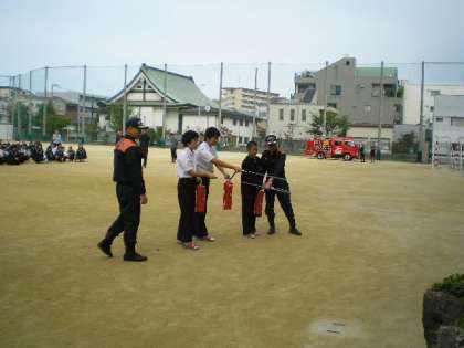 東淀川消防署の方に来ていただき、消火器の使用の仕方を