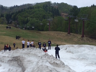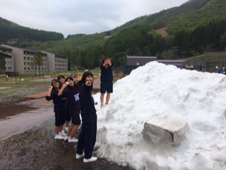 ホテル周辺は大自然に囲まれていますね!こんな時期に雪遊び!