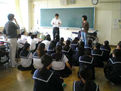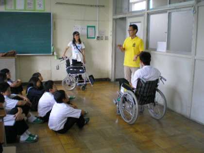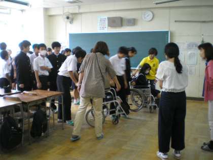 生徒たちは、車いすの動きや操作の説明を受け実際に操作や体験をし、